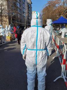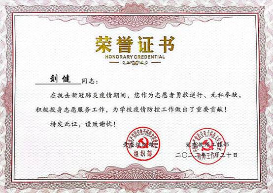 上图为刘健同志担任社区防疫志愿者留影